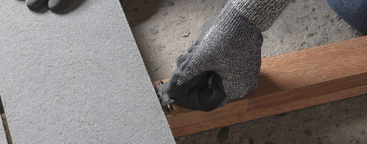 Our Cedral terrace clips are especially engineered to make installing our planks easy and simple. The fixing is invisible, and the ingenious little feet hold the Cedral clips in place, making it easy to screw in the screw. The clips also ensure thanks to the clever design that the interdistance between your planks is always the same.