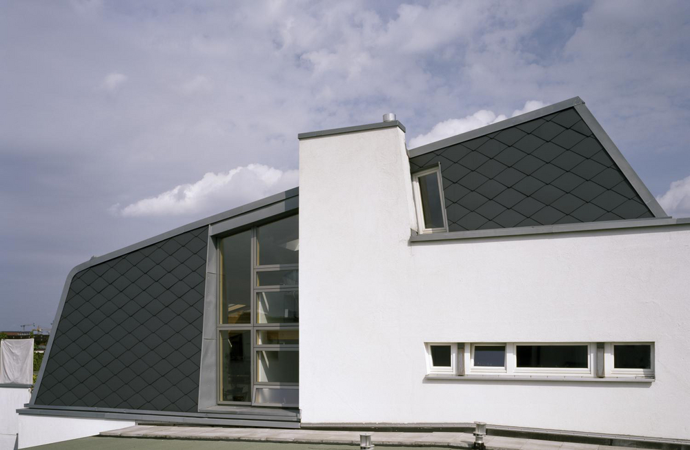 Pro prodloužení střechy byly vybrány vláknocementové desky pro čisté linie a ekonomickou konstrukci.