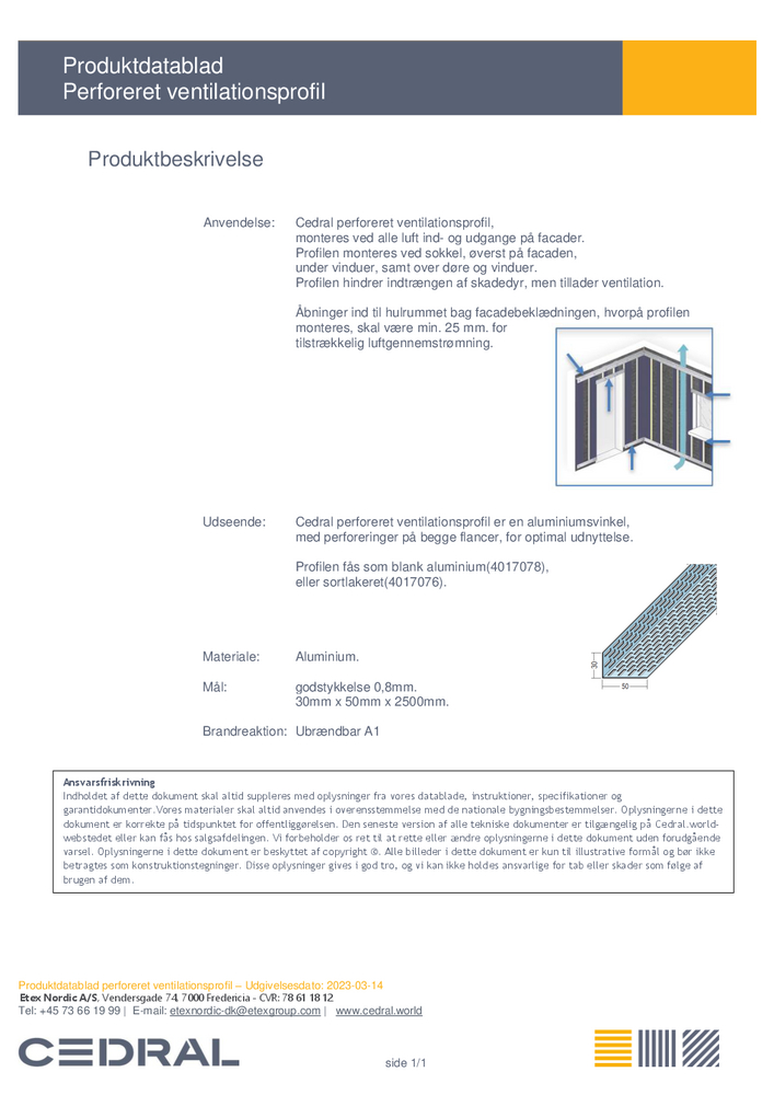 Produktdatablad Ventilationsprofil Technical Datasheet Produktdatablad Ventilationsprofil Produktdatablad Ventilationsprofil