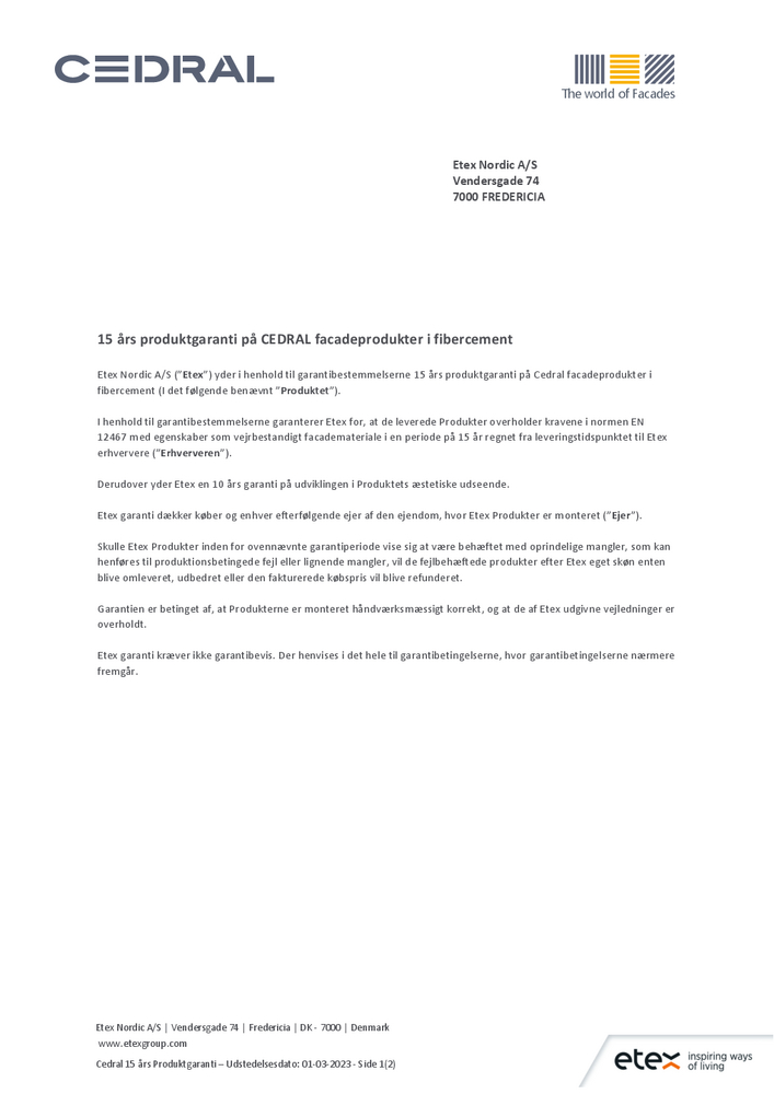15 års Produktgaranti Cedral Garanti 15 års Produktgaranti Cedral 15 års produktgaranti Cedral facadeprodukter