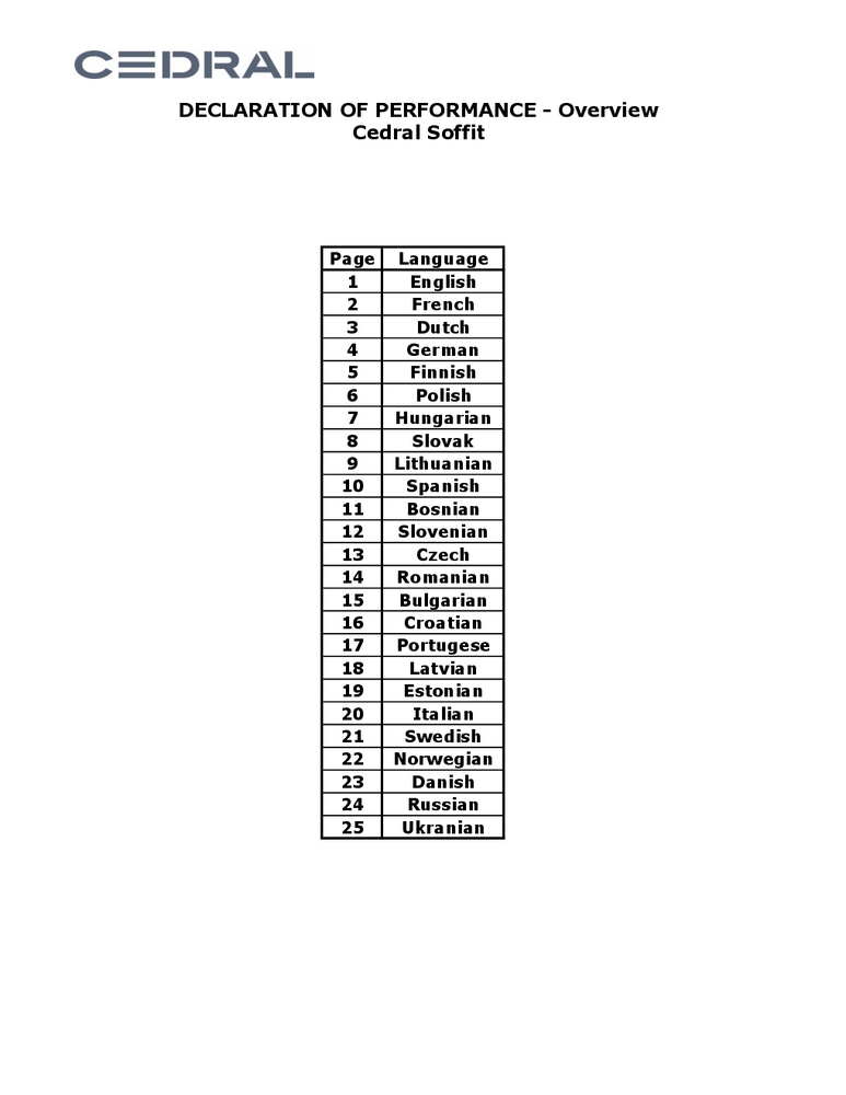 Declaration of Performance - Cedral Trims Declaration of Performance Declaration of Performance - Cedral Trims