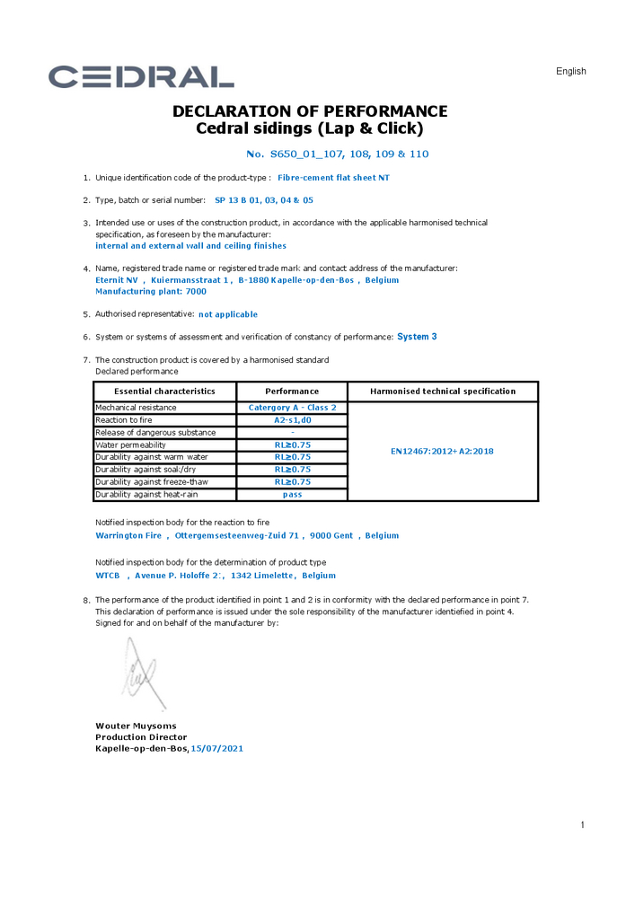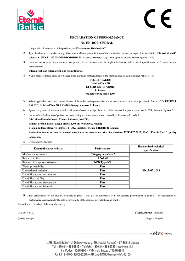 Declaration of Performance Cedral Board Declaration of Performance Declaration of Performance Cedral Board
