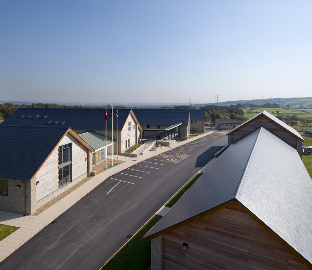 The complex consists of four interlinked buildings to provide sleeping, living and training accommodation as well as a separate stores / office block.