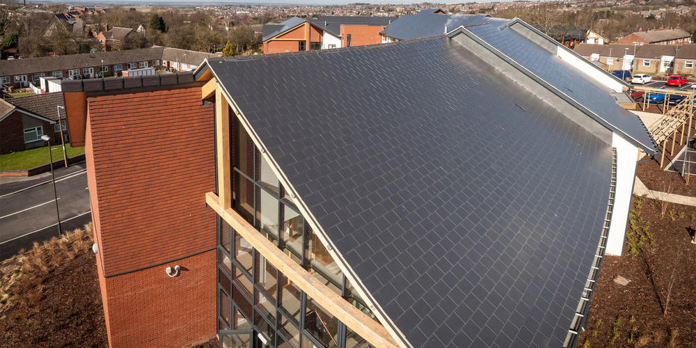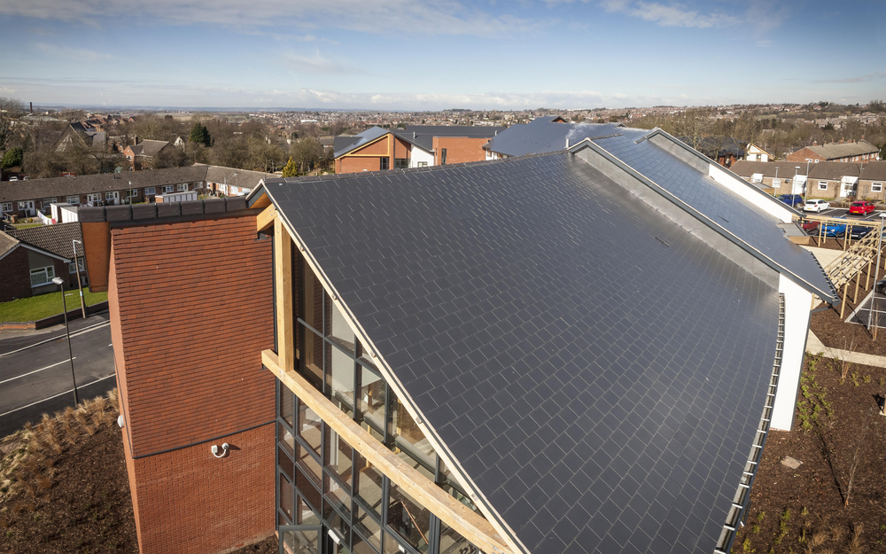 The Rivendale fibre cement slate enabled the project to achieve the desired aesthetic, providing a crisp roof line where the slates could also be used on a curved plan form.