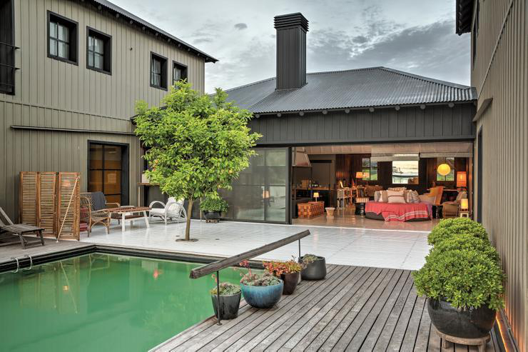 Refugio de vacaciones en Pilar, Buenos Aires. De espíritu libre predominan la madera, el cuero y el junco combinados en un espacio único.