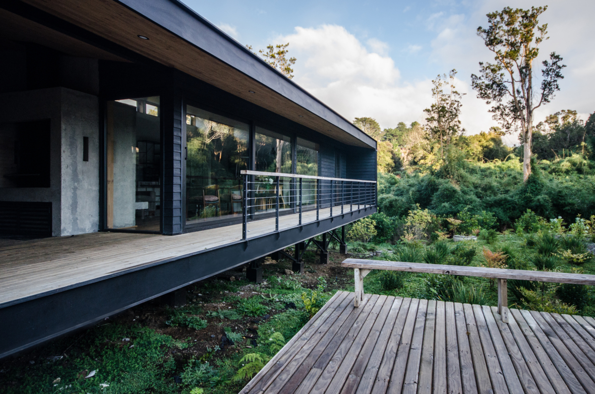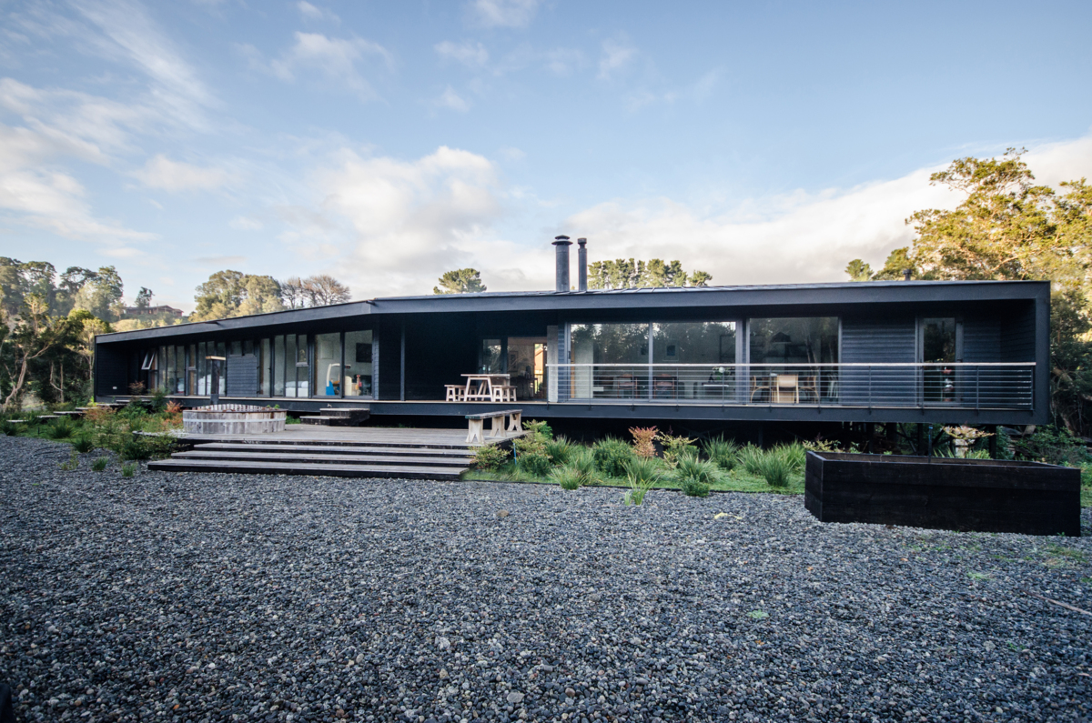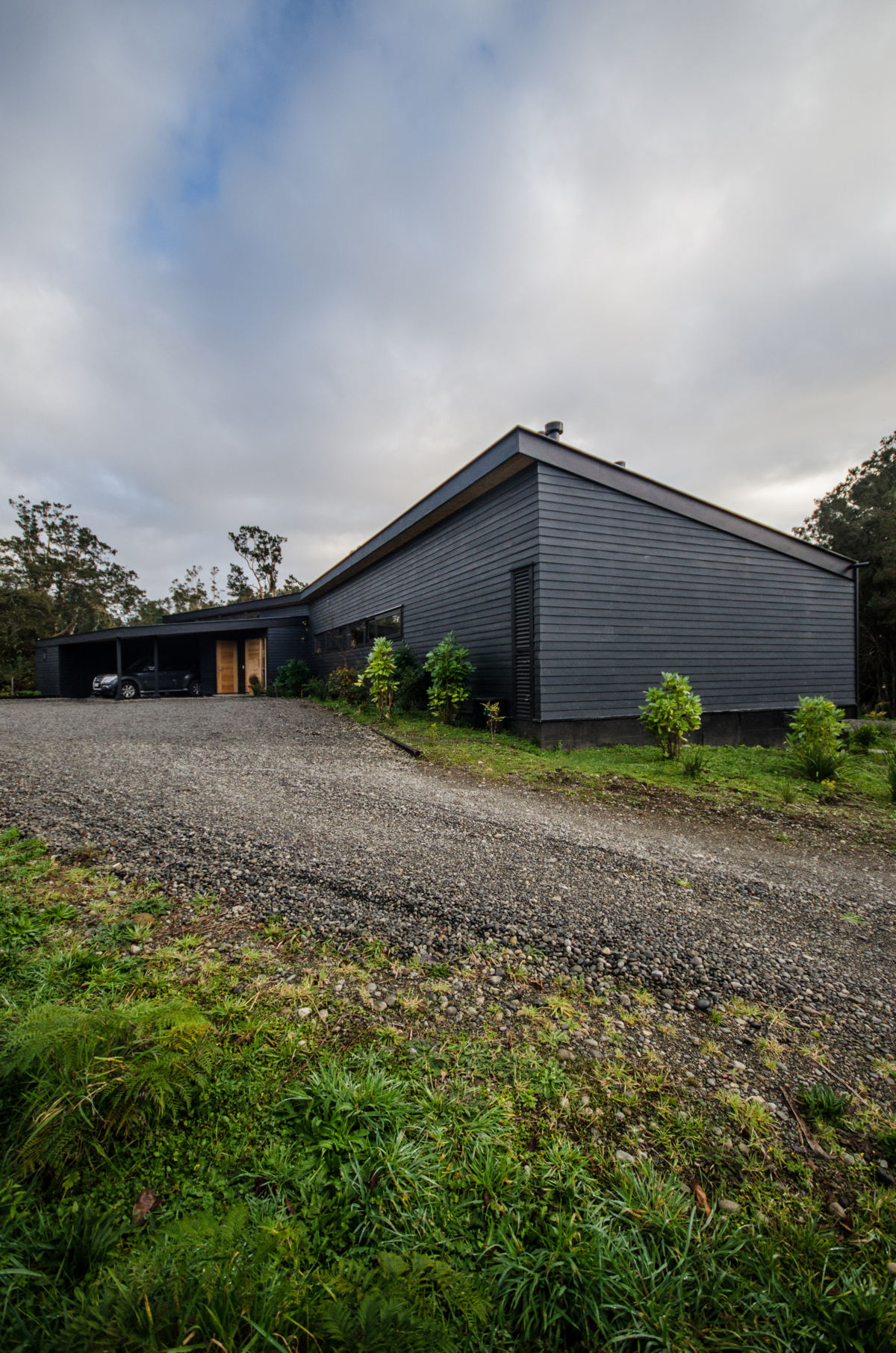 Vivienda unifamiliar ubicada en Puerto Varas, sur de Chile. Con un clima Oceánico lluvioso de altas precipitaciones, las principales estrategias de adaptación climática apuntaron a promover el asoleamiento durante el año, proteger la fachada norte la cual se ve afectada en los días de lluvia por el viento Norte predominante y reducir las pérdidas de calor por conducción y convección, considerando las bajas temperaturas y humedad del lugar. Para eso se escogió Siding Pizarreño Cedral, que combina la apariencia de la madera con los atributos del fibrocemento.