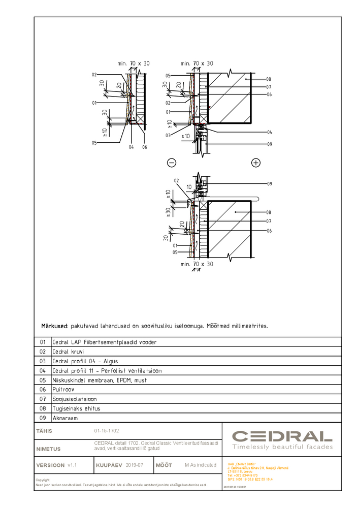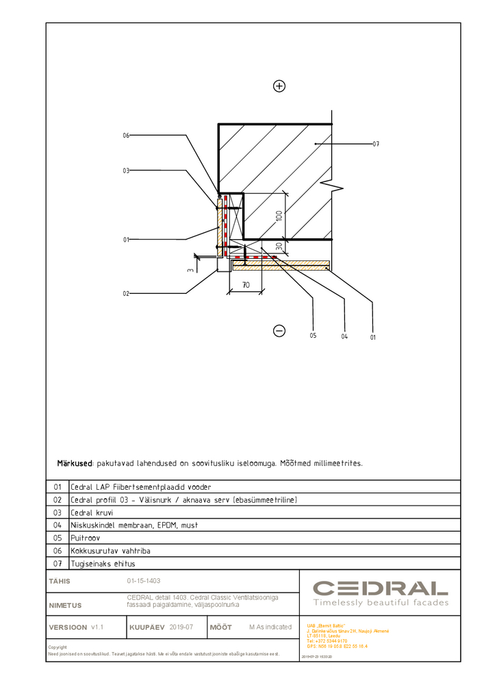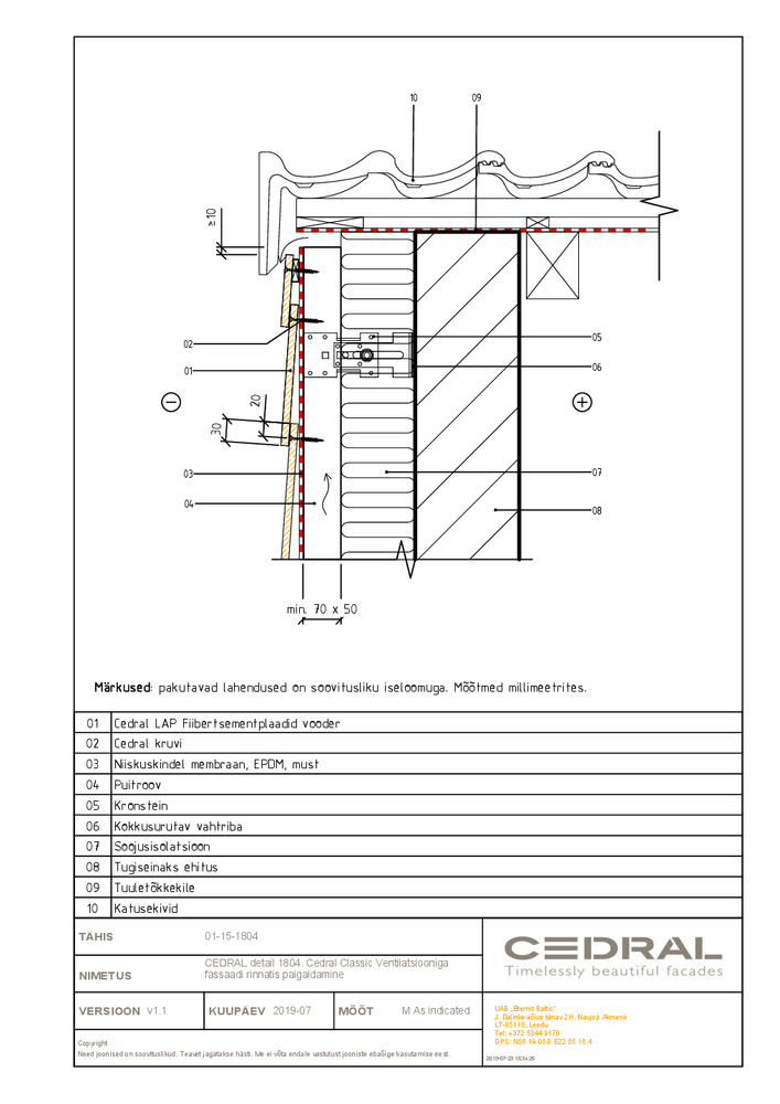 Cedral Classic Ventileeritud fassaadi avad, vertikaaltasandil lõigatud
