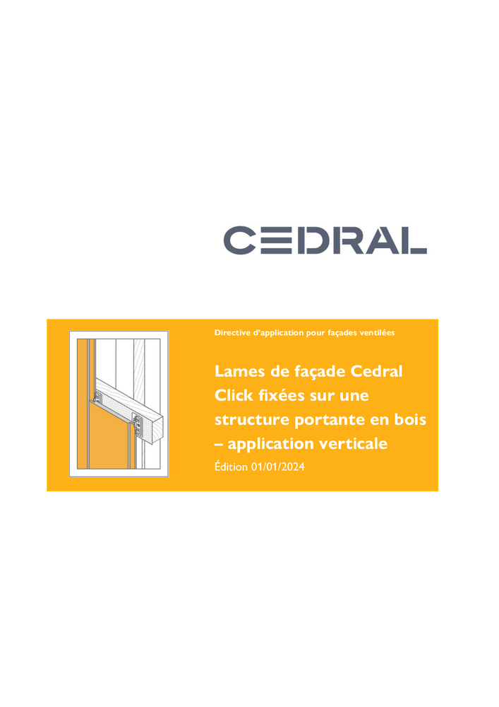 Lames de façade Cedral Click fixées sur une structure portante en bois – application verticale