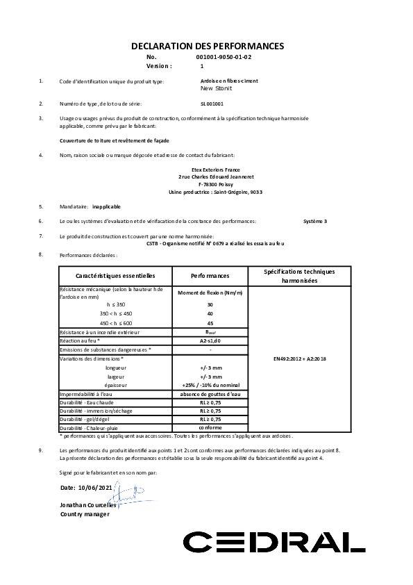 Déclaration de performance Cedral New Stonit Déclaration de performance Déclaration de performance Cedral New Stonit