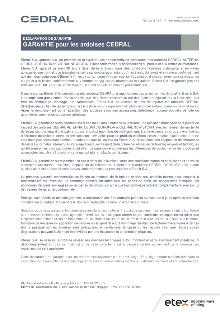 Garantie Cedral Ardoises générale Garantie Garantie Cedral Ardoises générale Garantie Cedral Ardoises générale
