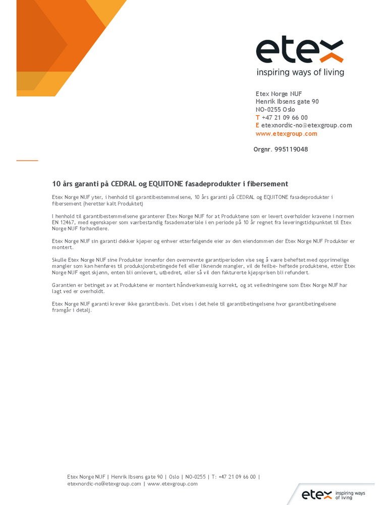 15 års Produktgaranti Cedral Garanti 15 års Produktgaranti Cedral 15 års produktgaranti Cedral fasadeprodukter