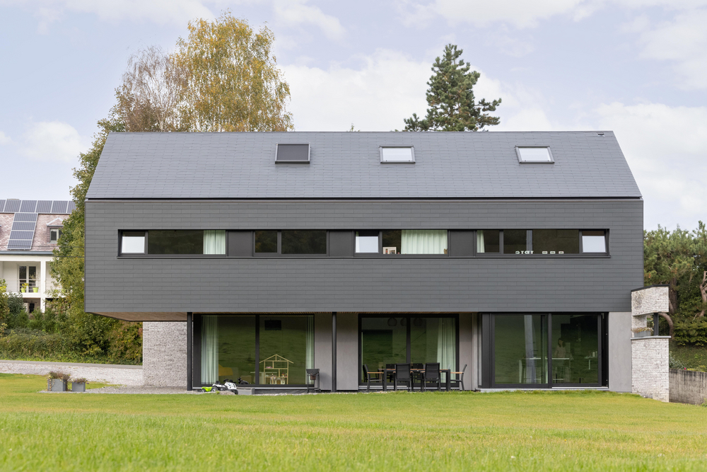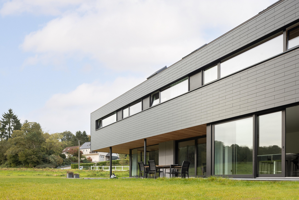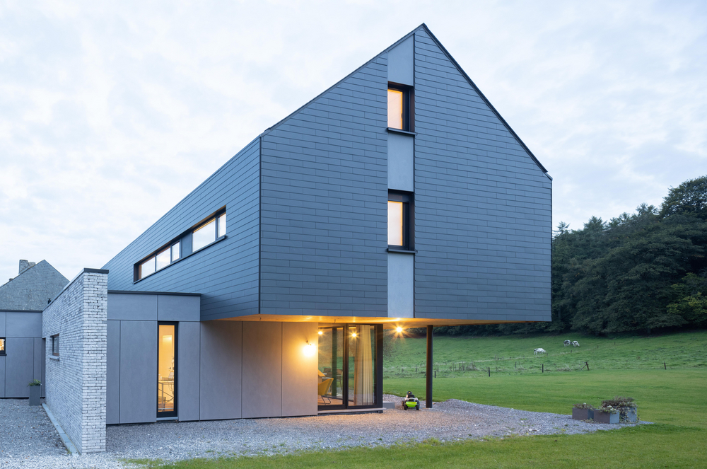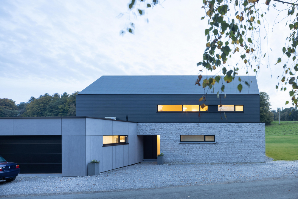Biesme - Belgiƫ Details Titel Biesme - Belgiƫ Type gebouw Woongebouw Project Nieuwbouw Plaatsing Leien - Halfsteensverband Kleur Donkergrijs Architect VDD architecte Fotograaf Marcel Van Coile Delen Vorige Volgende