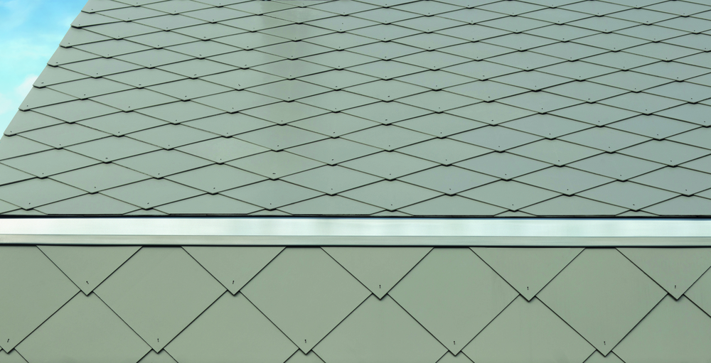 Een eigentijds modern project bekleed met ruitleien in klassieke plaatsing, wat een interessante combinatie. De portieken en ramen breken het patroon en zorgen voor ritme.