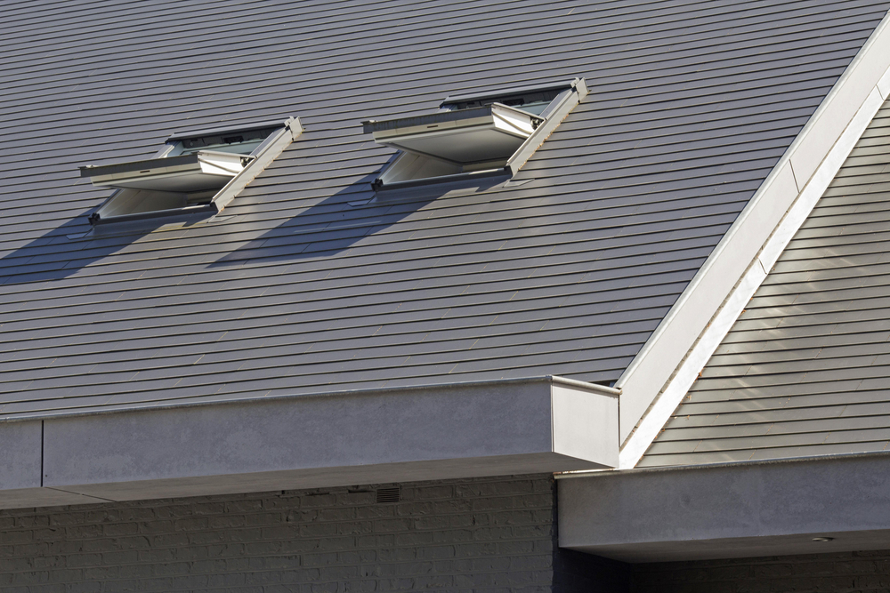 De keuze voor de twee in een hoek van 90° ten opzichte van elkaar geplaatste daken heeft niet alleen esthetische redenen: deze oplossing vloeide ook voort uit het verschil in gebruik. Onder het steilere, spits toelopende dak werden namelijk extra gastenkamers ingericht, terwijl het kleinere, minder hellende dak het eronder liggende vertrek meer volume en ruimte bezorgt. Het gebruik van dezelfde dakplaten van Eternit voor de daken en gevelkanten zorgt er intussen voor dat de verschillende gebouwdelen tot één geheel versmelten, net zoals ook alle benutte materialen met betrekking tot hun oppervlaktewerking en kleuren zorgvuldig op elkaar werden afgestemd. Ondanks zijn bescheiden buitenkant is het onconventionele huis langs binnen verbazingwekkend ruim en biedt het een ruimtelijke veelzijdigheid. Het past bovendien harmonieus in de rij van dubbelwoningen, aangezien zijn verscheidenheid pas bij het bekijken ervan in detail duidelijk wordt.