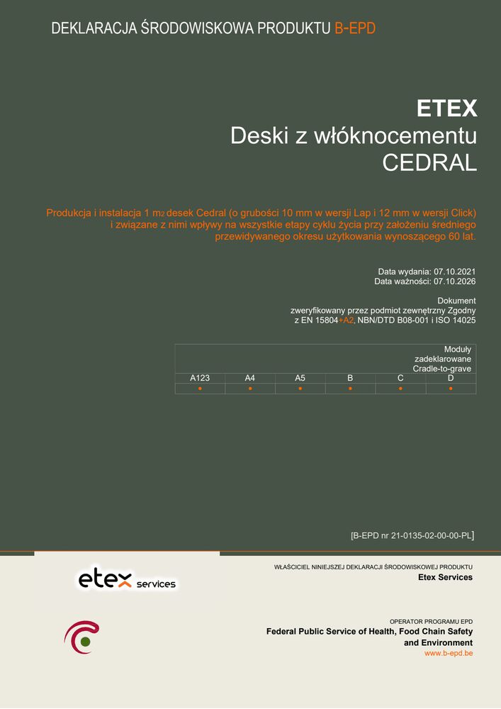 Deklaracja środowiskowa deski z włókno-cementu Cedral