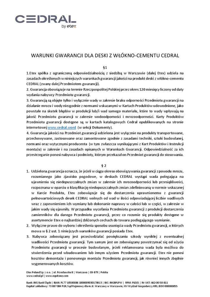 Warunki gwarancji deski Cedral Warunki gwarancji Warunki gwarancji deski Cedral Warunki gwarancji deski Cedral