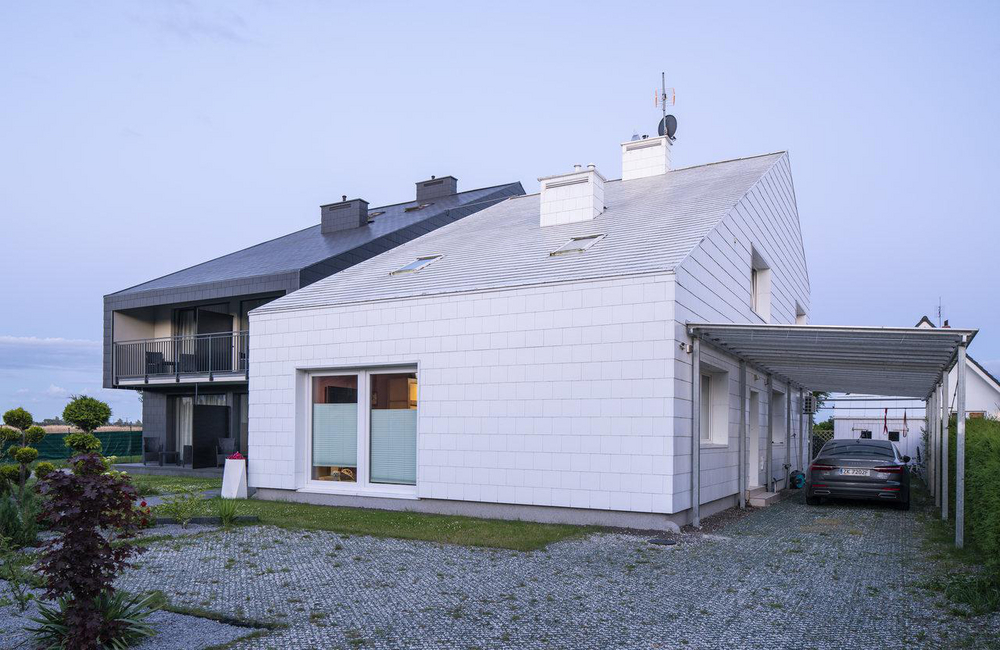 Ta wyjątkowa realizacja to wspajniałe połączenie kontrastu kolorów białego i grafitowego, które podkreśla, że mimo iż budynki są ze sobą połączone, tworzą oddzielne realizacje. W jednym z nich mieści się pensjonat "Spokojne Wczasy"(https://www.facebook.com/spokojnewczasy/).